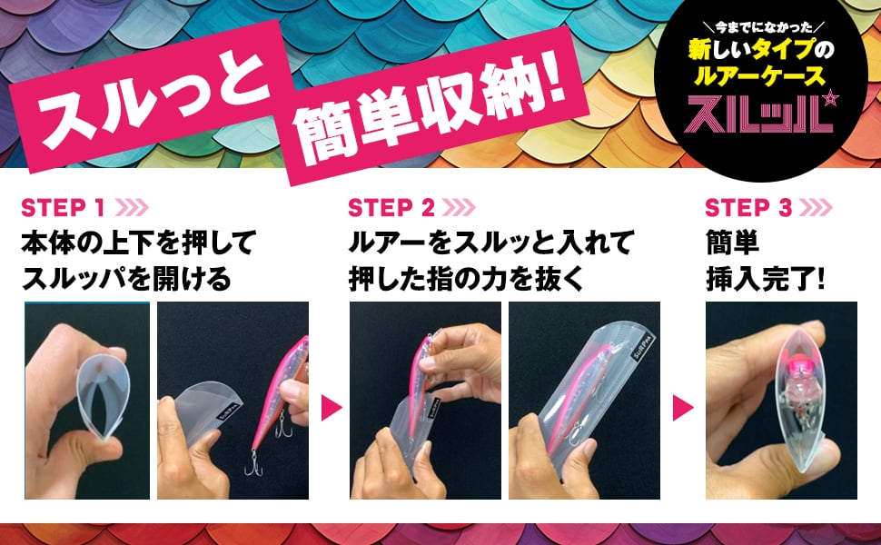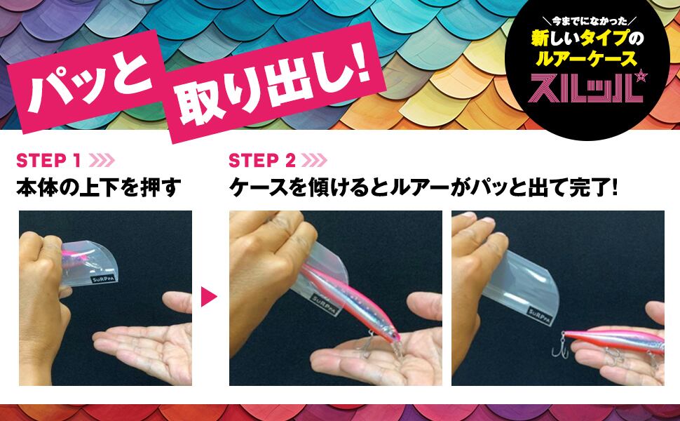 【■新感覚!クセになるスムーズな出し入れ】上下から指で軽く押すと、スルッパの口が大きく開きます。ルアーが滑って出し入れスムーズ。収納も取り出しも素早く簡単。ストレス知らず。